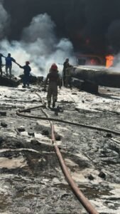 واشار الى أن ” الفرق لازالت مستمرة في الاخماد وتم تحجيم النيران وعدم توسعها وفرض السيطرة التامة”.